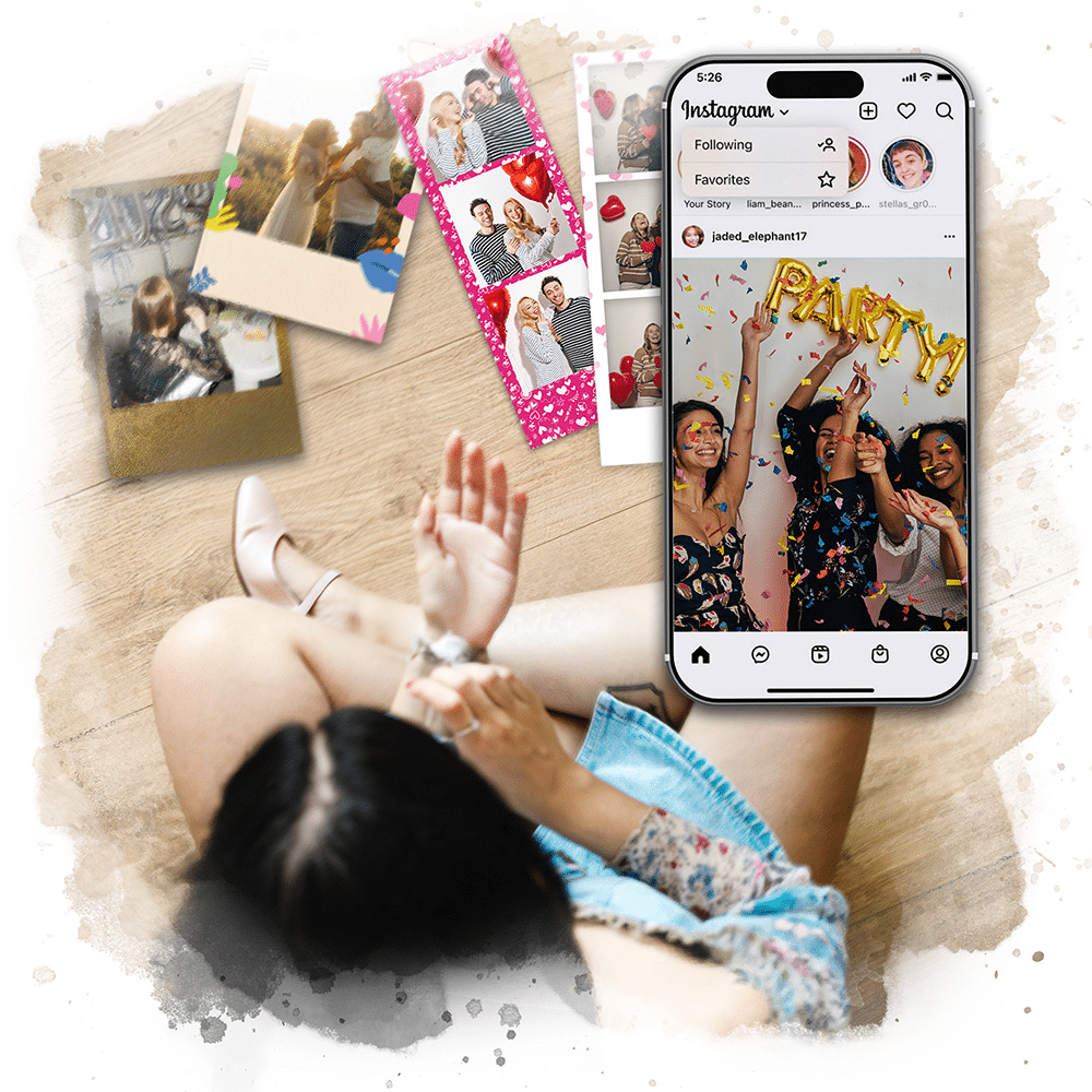 Chaque photo devient un petit trésor : imprimée instantanément sur papier premium ou envoyée par e-mail pour briller sur Instagram.